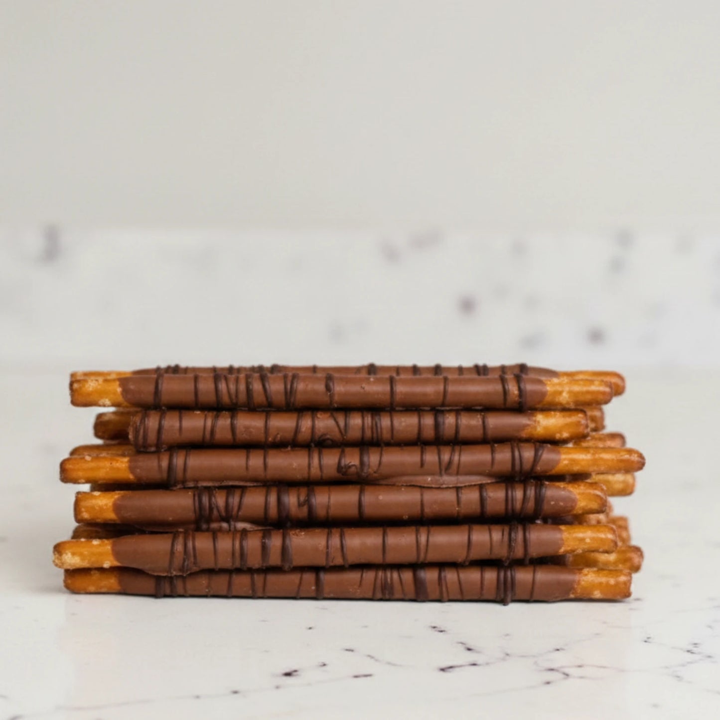 - 10 Chocolate-Dipped Pretzel Rods (or English Toffee Bars) – salty, crunchy, and coated in smooth chocolate.
