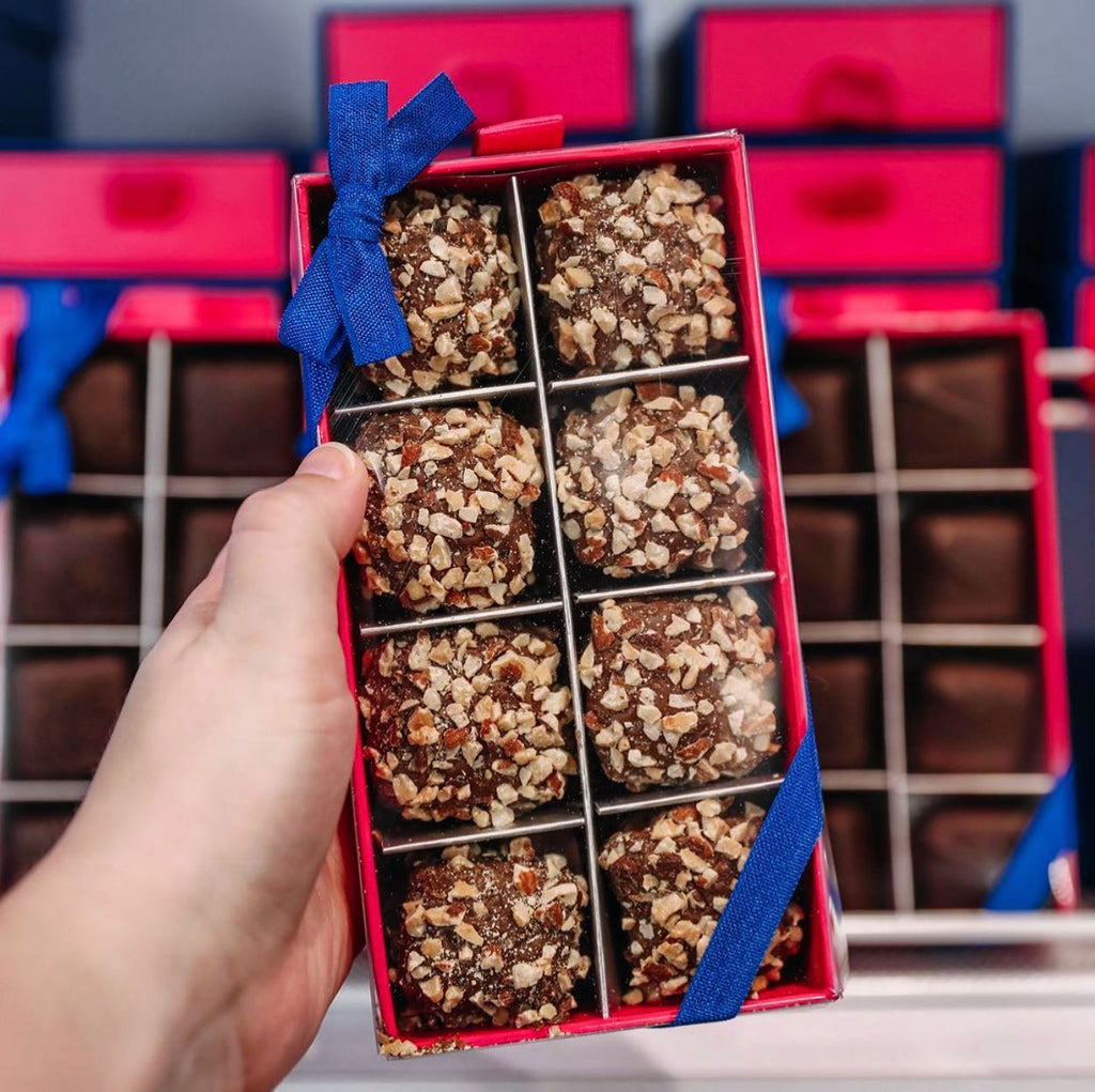 There is nothing quite like rich English toffee. At Peterbrooke Chocolatier, our toffee is handmade in small batches using simple, high-quality ingredients: real butter, sugar, and almonds. Each batch is slowly simmered in an antique copper kettle, just as it has been for generations, creating that deep caramelized flavor and crisp, buttery crunch that defines traditional English toffee.